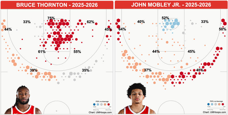 The 6-foot-2 Thornton is one of the most efficient guards in the Big Ten and has scored in double figures in 10 straight games. He’s shooting 63.1 percent on 2s in league play, which is 14th-best, and 38.1 percent on 3s in conference games, 25th-best.